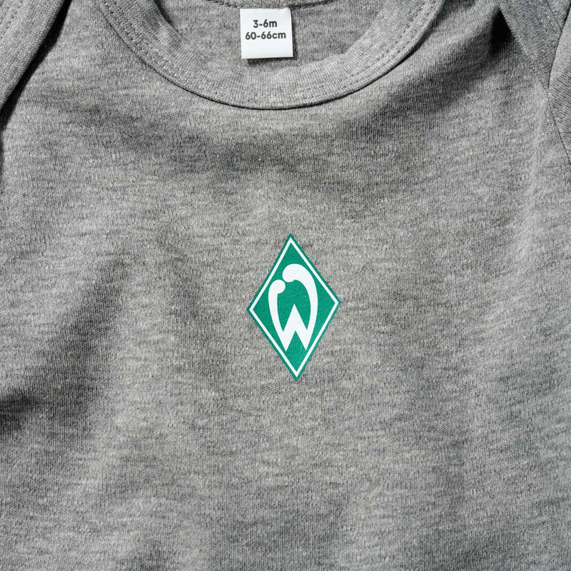 Produktdetails Basic-Ausstattung für den Nachwuchs. Mit diesem Baby Body sind auch die Kleinsten im Werder-Look gekleidet.Der graue Body überzeugt durch sein schlichtes und vereinsnahes Design. Auf der Vorderseite befindet sich mittig die Werder-Raute auf der Brust.Besonders praktisch sind die Druckknöpfe im Schritt, welche ein einfaches An- und Ausziehen ermöglichen.Das Lieblingsoutfit für jeden kleinen SV Werder Bremen-Fan! Damit trägt der Nachwuchs von Beginn an SVW.Besonderheiten kurzärmlig Druckknöpfe zum einfachen An- und Ausziehen mit unserer Werder-Raute Angaben zum Hersteller Werder Bremen Merchandising GmbH Hoerneckestraße 11/13 DE-28217 Bremenfanshop@werder.de