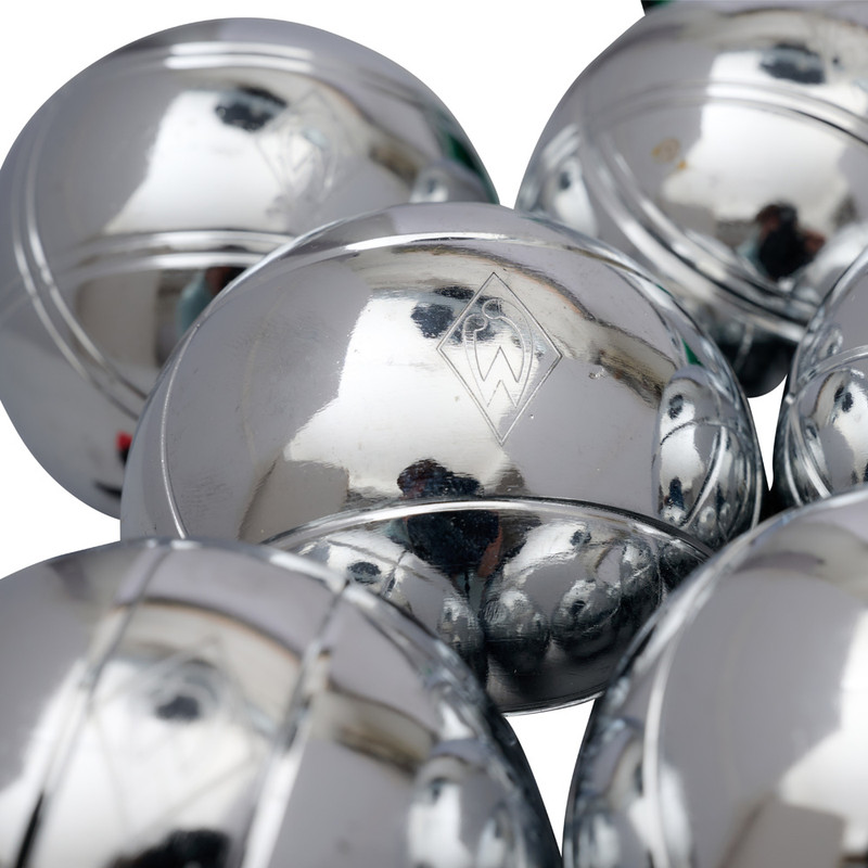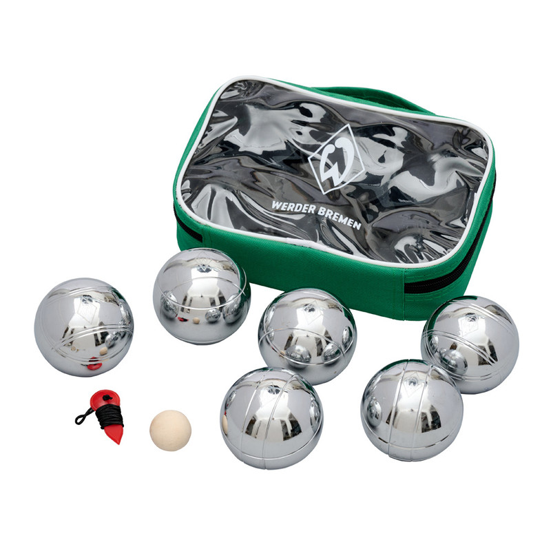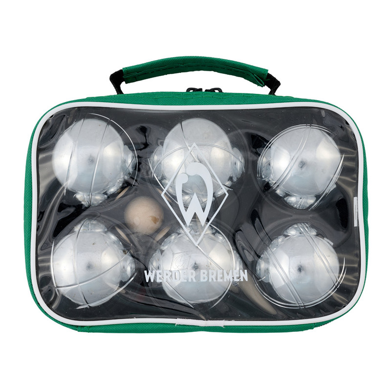 Produktdetails Entdecke Boule zu Zweit im Werder-Look!Zu jeder Jahreszeit ein abwechslungsreiches Spiel für Draußen: mit diesem Set bestehend aus 2×3 Boulekugeln bist du an der frischen Luft aktiv. Das Set ist für das Spiel auf weichem Untergrund (Sand, Gras usw.) geeignet.Das Design kommt im Werder-Look – die Prägung der Weder-Raute auf den Kugeln ist ein echter Hingucker! Dazu gibt es eine praktische Transporttasche mit Werder Bremen Schriftzug und unserer Werder-Raute als Aufdruck.Mit diesem Set hast du alles, was du brauchst, um eine Partie Boule à la Werder Bremen zu starten! #picknick #outdoorspiele dartBesonderheiten Set: 2×3 Kugeln, 1 Zielkugel, 1 Abstandsmesser, 1 praktische Transporttasche mit Werder-Raute als Prägung auf den Kugeln Angaben zum Hersteller Werder Bremen Merchandising GmbH Hoerneckestraße 11/13 DE-28217 Bremenfanshop@werder.de