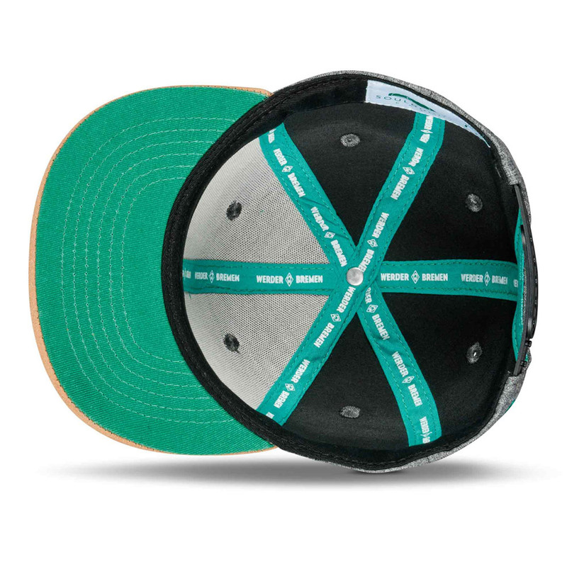 Produktdetails Blickfang für unterwegs. Die schicke Cap sorgt für coole Werder-Looks beim Nachwuchs.Der flache Schirm verfügt über eine grüne Unterseite, welche zusammen mit der braunen Werder-Raute auf der Vorderseite die Vereinsverbundenheit zum SVW symbolisiert und so allen zeigt, für welchen Verein das Herz des Nachwuchses schlägt. Neben dem gelungenen vereinsnahen Design punktet die Cap außerdem durch ihre Größenverstellbarkeit. So lässt sich durch den Druckverschluss die Größe ganz leicht anpassen.Die stylishe Cap ist zusätzlich auch als Set erhältlich. Das 2er-Set beinhaltet je eine Kinder Cap als auch eine Erwachsenencap und das 3er-Set hingegen eine Erwachsenencap und zwei Kinder Caps. Durch die praktischen Sets wird eine Ersparnis von 5€ (2er-Set) bzw. 10€ (3er-Set) im Vergleich zum einzelnen Kauf der Caps ermöglicht. Einfach beide Artikel in den Warenkorb legen – und fertig!Egal ob für einen Besuch im WESERSTADION, beim Familienausflug am Strand oder beim Spielen mit den Freunden, die Werder Cap ist einfach der ideale Begleiter.Besonderheiten braune Werder-Raute auf der Vorderseite braun abgesetzter, flacher Schirm grüne Unterseite des Schirms „Werder Bremen“-Schriftzüge samt Werder-Raute in der Innenseite grünes Motiv gestickt auf der rechten Seite größenverstellbar dank Druckverschluss bei Größe S Gummibund statt Druckverschluss erhältlich einzeln oder als Set 2er-Set: 1 x Erwachsenencap, 1 x Kinder Cap 3er-Set: 1 x Erwachsenencap, 2 x Kinder Caps einfach beide Artikel in den Warenkorb legen – und fertig! Angaben zum Hersteller Werder Bremen Merchandising GmbH Hoerneckestraße 11/13 DE-28217 Bremenfanshop@werder.de