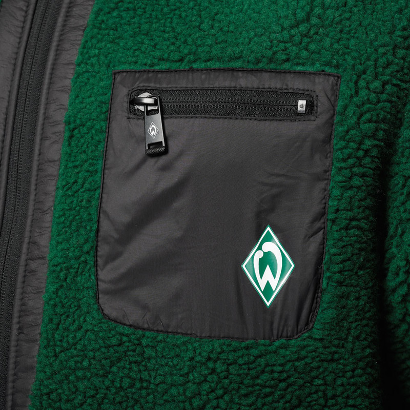 Produktdetails Diese Sweatjacke ist ein echtes Must-have für alle Werder-Fans!Mit den dunkelgrünen Raglanärmeln im Retro-Look und dem melierten Hellgrau erinnert die Sweatjacke an eine College-Trainingsjacken.Auf der (Herz-)seite sitzt unsere gestickte Werder-Raute. Weiße Kordeln an der Kapuze, ein durchgehender Reißverschluss und praktische Kängurutaschen machen die Jacke nicht nur stylisch, sondern auch alltagstauglich.Der angenehm weiche Stoff aus 100% Baumwolle aus biologischem Anbau sorgt für besten Tragekomfort – egal ob auf dem Weg ins Stadion, beim Spaziergang oder beim Chillen zu Hause.Besonderheiten warmes, pflegeleichtes Fleecematerial Brusttasche mit Reißverschluss mit Werder-Raute als Print durchgehender Frontreißverschluss seitliche Eingrifftaschen mit Reißverschluss Stehkragen für extra Schutz Angaben zum Hersteller Werder Bremen Merchandising GmbH Hoerneckestraße 11/13 DE-28217 Bremenfanshop@werder.de