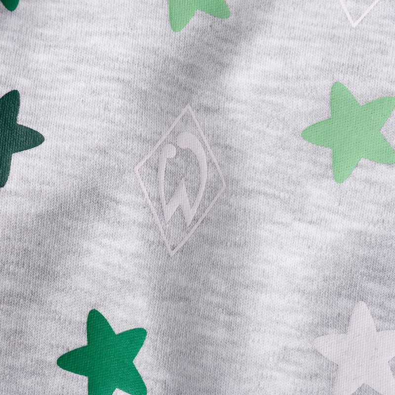 ProduktdetailsMit diesem süßen Werder-Babybody wird jeder Tag ein kleines Fan-Abenteuer!Das liebevoll gestaltete Allover-Muster aus kleinen Sternen und Werder-Rauten auf graumeliertem Grund sorgt für einen fröhlich-verspielten Look.Dank praktischem Schlupfkragen und Druckknöpfen im Windelbereich lässt sich der Body besonders einfach an- und ausziehen – ob morgens beim Umziehen oder beim schnellen Windelwechsel zwischendurch.Die weiche Baumwolle aus biologischem Anbau liegt angenehm auf der empfindlichen Babyhaut und macht den Body zum neuen Lieblingsstück im Kleiderschrank der Kleinsten.Für die kleinsten Werder-Fans mit grün-weißem Start ins Leben! #fanliebeminiBesonderheitenHinweise zur NachhaltigkeitDieses Produkt trägt den Grünen Knopf. Das heißt: hohe soziale und ökologische Standards. Vom Staat festgelegt und von unabhängigen Prüfern kontrolliert. CHAPS Merchandising GmbH trägt die Produktverantwortung für diesen „Grüner Knopf”-zertifizierten Artikel.Dieser Artikel ist ebenfalls mit dem GOTS-Label ausgezeichnet, dem Global Organic Textile Standard, welches die Anforderungen an eine ökologisch- und sozialverträgliche Textilproduktion von biologisch erzeugten Rohstoffen unterliegt.Mehr Informationen zu diesen Themen findet ihr unter:Grüner Knopf: https://www.gruener-knopf.de/GOTS: https://global-standard.org/the-standard Grau meliert mit grün-weißem Allover-Muster aus Sternen & Werder-Rautenpraktischer Schlupfkragen für leichtes Umziehen3 Druckknöpfe im SchrittbereichKurzarm-Design – ideal für das ganze Jahr Angaben zum HerstellerWerder Bremen Merchandising GmbH Hoerneckestraße 11/13 DE-28217 Bremenfanshop@werder.de