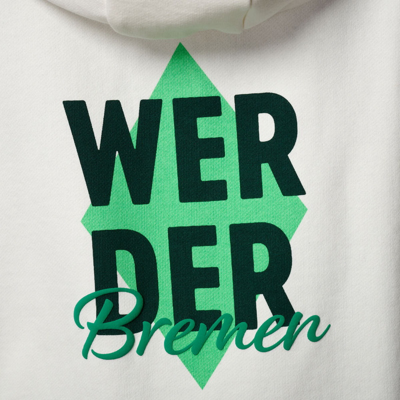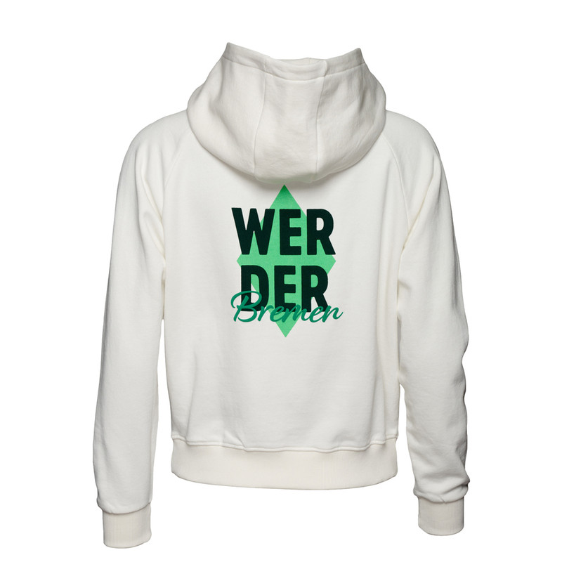 ProduktdetailsFür alle Werder-Fans mit Gefühl für Mode und Verein: Dieser Hoodie kombiniert sportliche Lässigkeit mit modischen Details, die ins Auge fallen!Vorne auf der (Herz-)seite ist ein kreativer „WERDER Bremen“-Schriftzug auf einer hellgrünen Raute platziert. Das gleiche Motiv findet sich ebenfalls auf dem Rücken wieder.Der Hoodie ist in einem cremeweißen Farbton gehalten und punktet mit weichem Stoff, gemütlicher Kapuze und einem angenehm lockeren Schnitt. Ein echtes Wohlfühlteil – für Schule, Freizeit oder das nächste Heimspiel im Stadion.Für alle grün-weißen Fans, die Werder im Herzen tragen! #neuehoodiesBesonderheitenHinweise zur NachhaltigkeitDieses Produkt trägt den Grünen Knopf. Das heißt: hohe soziale und ökologische Standards. Vom Staat festgelegt und von unabhängigen Prüfern kontrolliert. CHAPS Merchandising GmbH trägt die Produktverantwortung für diesen „Grüner Knopf”-zertifizierten Artikel.Dieser Artikel ist ebenfalls mit dem GOTS-Label ausgezeichnet, dem Global Organic Textile Standard, welches die Anforderungen an eine ökologisch- und sozialverträgliche Textilproduktion von biologisch erzeugten Rohstoffen unterliegt.Mehr Informationen zu diesen Themen findet ihr unter:Grüner Knopf: https://www.gruener-knopf.de/GOTS: https://global-standard.org/the-standard Vorne auf der (Herz-)seite: Werder Bremen-Print auf hellgrüner RauteRückseite mit Werder Bremen-Print auf hellgrüner Rautebequeme Kapuze ohne KordelnRippbündchen an Saum und Ärmeln Angaben zum HerstellerWerder Bremen Merchandising GmbH Hoerneckestraße 11/13 DE-28217 Bremenfanshop@werder.de