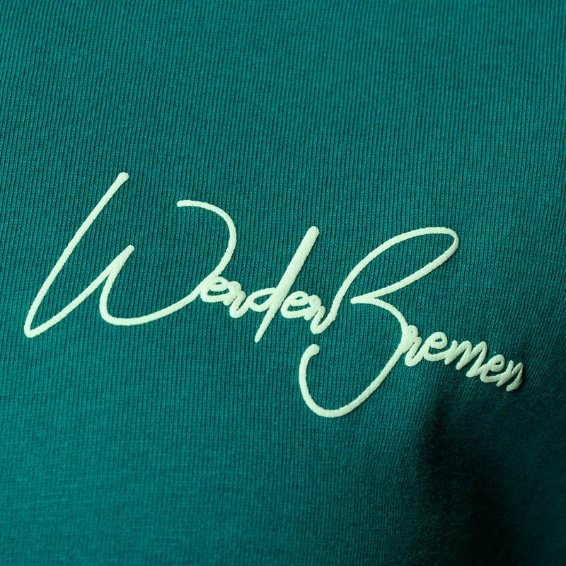 ProduktdetailsIm grünen T-Shirt zeigst du deine Verbundenheit zu Werder Bremen auf stilvolle und nachhaltige Weise!Das schlicht gehaltene Shirt mit „Werder Bremen“ 3D-Print auf der Herzseite verdeutlicht die Leidenschaft zum SVW. Durch den lässigen Schnitt lässt sich das Shirt vielseitig kombinieren.Gefertigt aus 100% Baumwolle aus biologischem Anbau für einen angenehmen Tragekomfort. Ob beim Stadionbesuch, im Alltag oder an wärmeren Tagen – das zeitlose Shirt bleibt dir treu.Mach dieses Shirt zu deinem neuen Lieblingsstück und zeige, dass dein Herz für Werder Bremen schlägt!#T-ShirtsFrauenBesonderheitenHinweise zur NachhaltigkeitDieses Produkt trägt den Grünen Knopf. Das heißt: hohe soziale und ökologische Standards. Vom Staat festgelegt und von unabhängigen Prüfern kontrolliert. CHAPS Merchandising GmbH trägt die Produktverantwortung für diesen „Grüner Knopf”-zertifizierten Artikel.Dieser Artikel ist ebenfalls mit dem GOTS-Label ausgezeichnet, dem Global Organic Textile Standard, welches die Anforderungen an eine ökologisch- und sozialverträgliche Textilproduktion von biologisch erzeugten Rohstoffen unterliegt.Mehr Informationen zu diesen Themen findet ihr unter:Grüner Knopf: https://www.gruener-knopf.de/GOTS: https://global-standard.org/the-standard „Werder Bremen“-Schriftzug auf der (linken) Herzseiteschlichtes, zeitloses DesignRundhalsausschnittAngaben zum HerstellerWerder Bremen Merchandising GmbH Hoerneckestraße 11/13 DE-28217 Bremenfanshop@werder.de