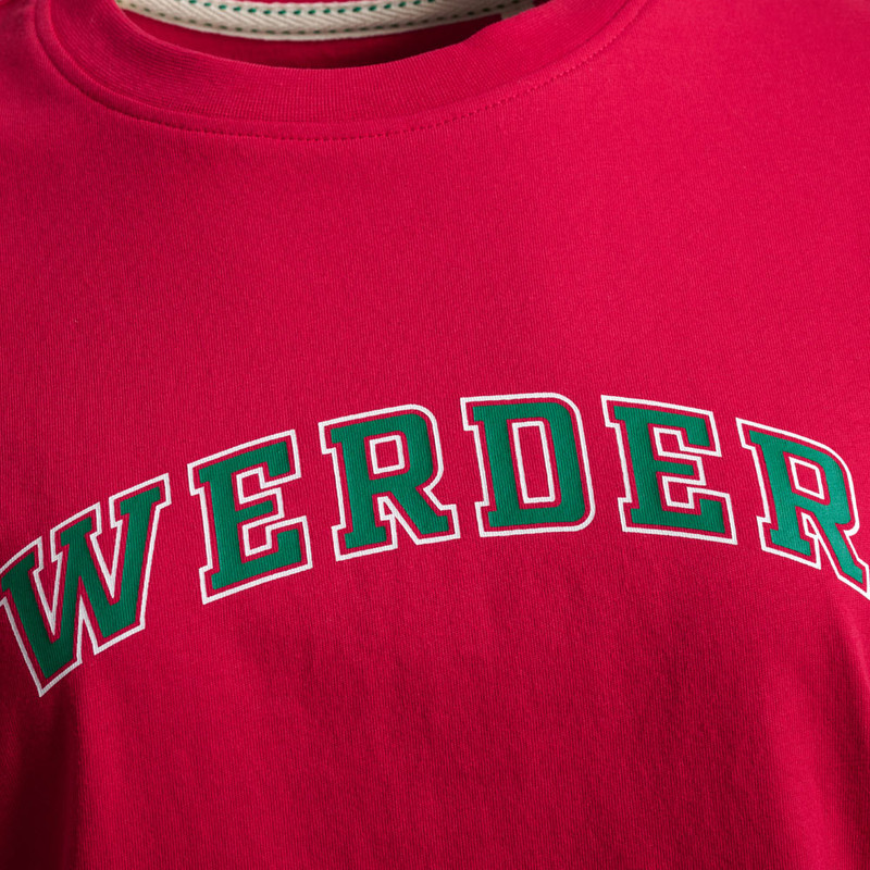 ProduktdetailsHighlight in Pink. Dieses T-Shirt ist dank seiner Farbe der Hingucker von jedem Outfit.Dank der auffälligen Farbe verleihst du deinem Look das gewisse Extra und bist definitiv stylisch unterwegs. Mittig auf der Vorderseite befindet sich zudem ein grüner „Werder“-Schriftzug als Druck. Er setzt vereinsverbundene Akzente und zeigt, für welchen Verein dein Herz schlägt.Der cropped Schnitt sorgt für einen lässigen und angenehmen Look im Sommer. Der ideale Alltagsbegleiter, wenn es einmal nicht das klassische Werder-Grün sein soll. #werderfrauenBesonderheitenHinweise zur NachhaltigkeitDieses Produkt trägt den Grünen Knopf. Das heißt: hohe soziale und ökologische Standards. Vom Staat festgelegt und von unabhängigen Prüfern kontrolliert. CHAPS Merchandising GmbH trägt die Produktverantwortung für diesen „Grüner Knopf”-zertifizierten Artikel.Dieser Artikel ist ebenfalls mit dem GOTS-Label ausgezeichnet, dem Global Organic Textile Standard, welches die Anforderungen an eine ökologisch- und sozialverträgliche Textilproduktion von biologisch erzeugten Rohstoffen unterliegt.Mehr Informationen zu diesen Themen findet ihr unter:Grüner Knopf: https://www.gruener-knopf.de/GOTS: https://global-standard.org/the-standard „Werder“-Schriftzug als DruckRundhalsausschnittcroppedAngaben zum HerstellerWerder Bremen Merchandising GmbH Hoerneckestraße 11/13 DE-28217 Bremenfanshop@werder.de