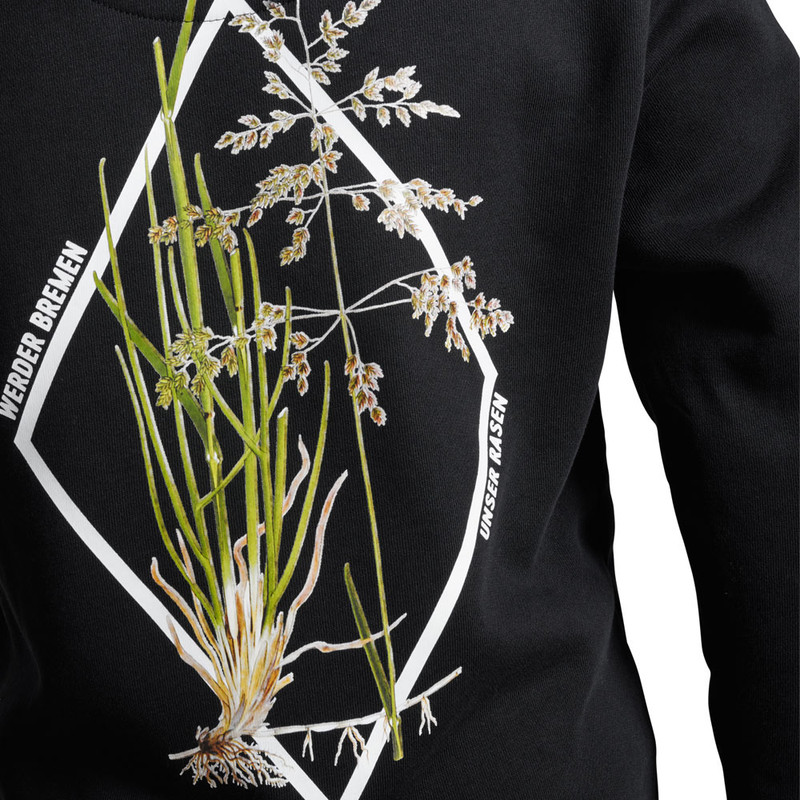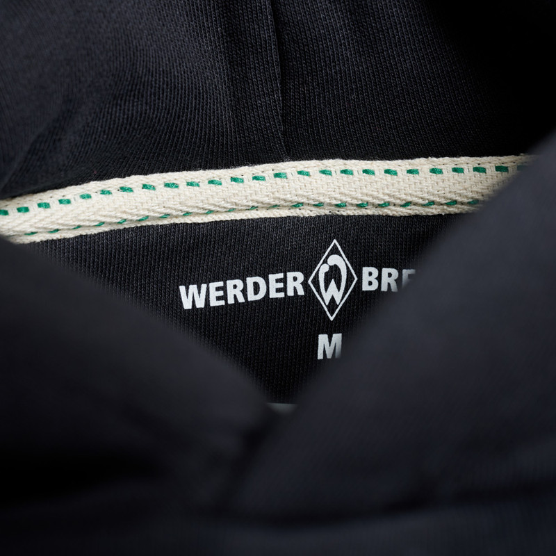 ProduktdetailsDieser schwarze Hoodie ist ein besonderer Hingucker in deiner Werder-Garderobe! Jetzt kannst du ein Stück Stadionrasen immer mit dir tragen!Die Kapuze und die Kängurutasche sorgen für eine ideale Alltagstauglichkeit, die Rippbündchen an Ärmelenden und Saum für einen guten Sitz.Das Highlight des Hoodies ist das kreative Design: eine detaillierte botanische Illustration von einem Stück Rasen und dessen Blüte gerahmt in einer weißen Raute und unserem Schriftzug „Werder Bremen – Unser Rasen“ ist auf der Rückseite abgebildet.Auf der Vorderseite wird die Illustration in kleinerer Darstellung auf der linken (Herz-)Seite aufgegriffen. Auf der rechten Vorderseite findet sich der „Werder Bremen – Unser Rasen“-Schriftzug in Weiß wieder.Unser Rasen kann also auch blühen! Eine Wissenschaft für sich, aber enorm wichtig für das Spiel der Profis: Die Rasenpflege im Weserstadion! Dieser Hoodie ist pures Stadion-Feeling! #frischesBesonderheitenHinweise zur NachhaltigkeitDieses Produkt trägt den Grünen Knopf. Das heißt: hohe soziale und ökologische Standards. Vom Staat festgelegt und von unabhängigen Prüfern kontrolliert. CHAPS Merchandising GmbH trägt die Produktverantwortung für diesen „Grüner Knopf”-zertifizierten Artikel.Dieser Artikel ist ebenfalls mit dem GOTS-Label ausgezeichnet, dem Global Organic Textile Standard, welches die Anforderungen an eine ökologisch- und sozialverträgliche Textilproduktion von biologisch erzeugten Rohstoffen unterliegt.Mehr Informationen zu diesen Themen findet ihr unter:Grüner Knopf: https://www.gruener-knopf.de/GOTS: https://global-standard.org/the-standard UnisexHoodie in SchwarzRückseite: detaillierte botanische Illustration von der Rasenblüte gerahmt in einer weißen Raute und unserem Schriftzug „Werder Bremen – Unser Rasen“links auf der Vorderseite: detaillierte botanische Illustration vom Rasen gerahmt in einer weißen Rauterechts auf der Vorderseite: „Werder Bremen – Unser Rasen“-Schriftzug in WeißKängurutascheRippbündchen an Ärmelenden und SaumKapuzeAngaben zum HerstellerWerder Bremen Merchandising GmbH Hoerneckestraße 11/13 DE-28217 Bremenfanshop@werder.de