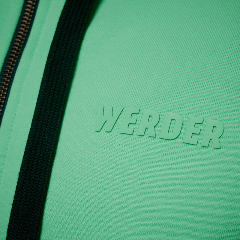 ProduktdetailsMit dieser Werder-Sweatjacke zeigst du Stil und Liebe zum Verein in einem sportlich-modernen Design!Die auffällige Colorblock-Optik mit kontrastierenden Ärmeln und Kapuze in Dunkelgrün sowie der Front in Hellgrün macht sie zu einem echten Highlight für alle Fans.Ein besonderes Detail für alle: der „WERDER“-Schriftzug auf der linken Herzseite – genau dort, wo die Leidenschaft für den Verein sitzt.Der bequeme Schnitt, die weiche Baumwolle aus biologischem Anbau und die durchdachten Details wie Kapuze mit Kordelzug, Kängurutasche und Reißverschluss machen diese Jacke zum idealen Begleiter im Alltag und rund ums Weserstadion.Ein Must-have für alle SVW-Fans – ob in der Kurve, unterwegs oder auf dem Sofa.Dieser Artikel gehört zu der Initiative „Vom Feld in den Shop“, ein Projekt für nachhaltig produzierte Fanbekleidung: Hiermit werden Kleinbauern in Indien bei der Umstellung auf biologischen Baumwollanbau unterstützt und Kinder aus den angrenzenden Gemeinden des Baumwollanbaus durch Sporttraining gefördert. #vomfeldindenfanshopBesonderheitenHinweise zur NachhaltigkeitZiele des Fairtrade Textilstandards sind die Umsetzung von existenzsichernden Löhnen, die Stärkung von Arbeitern und Arbeiterinnen und mehr Sicherheit am Arbeitsplatz. Die Lieferkette von diesem Brands Fashion-Produkt ist nach dem Textilstandard zertifiziert. Es wird kontinuierlich daran gearbeitet, existenzsichernde Löhne in der kompletten Lieferkette umzusetzen, besuche: www.brands-fashion.comDarüber hinaus ist die gesamte Baumwolle in diesem Produkt von Fairtrade-Produzenten angebaut, nach dem Fairtrade-Baumwollstandard zertifiziert und gehandelt.Mehr Infos unter fairtrade-deutschland.de/siegel mit dem Fairtrade-Code 34261005Dieses Produkt trägt den Grünen Knopf. Das heißt: hohe soziale und ökologische Standards. Vom Staat festgelegt und von unabhängigen Prüfern kontrolliert. Brands Fashion GmbH trägt die Produktverantwortung für diesen „Grüner Knopf”-zertifizierten Artikel.Dieser Artikel ist mit dem Global Organic Textile Standard in Conversion (kurz: GOTS IC) ausgezeichnet, welches eine umweltfreundliche und sozialverantwortliche Herstellung der Textilien garantiert. Dabei wird die Umstellung zum kontrollierten biologischen Anbau unterstützt und die mit GOTS IC gekennzeichneten Artikel enthalten einen Mindestanteil von 95% Baumwolle in Umstellung. Zudem schafft Tracycle Transparenz über Ursprung und Fertigung sowie der gesamten Lieferkette dieses Produktes.Mehr Informationen zu diesen Themen findet ihr unter:Fairtrade: https://www.fairtrade-deutschland.de/was-ist-fairtrade/fairtrade-siegelGrüner Knopf: https://www.gruener-knopf.de/GOTS IC: https://global-standard.org/de/neuigkeiten/organic-in-conversion-storyTracycle: https://www.tracycle.com/1109302 Hellgrün mit dunkelgrünen Ärmeln und Kapuze (Colorblock-Design)„WERDER“-Schriftzug auf der linken (Herz-)seitepraktische KängurutascheKapuze mit KordelzugRippbündchen an Ärmeln und SaumRegular Fit Angaben zum HerstellerWerder Bremen Merchandising GmbH Hoerneckestraße 11/13 DE-28217 Bremenfanshop@werder.de