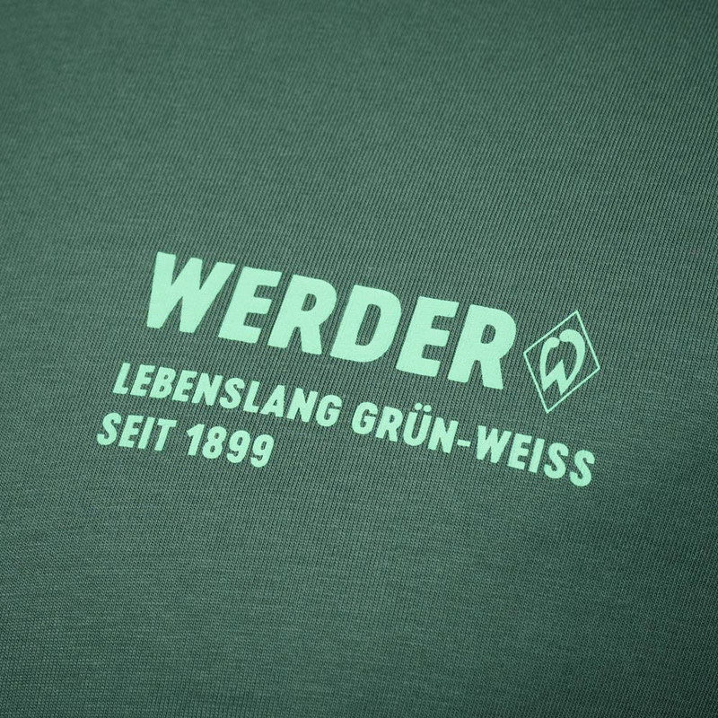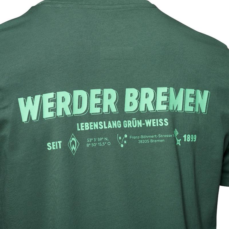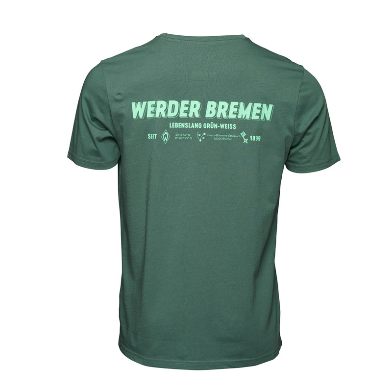 ProduktdetailsUnser Lieblingsort – unser Weserstadion! Ein T-Shirt mit ganz viel Werder drauf!Auf der Vorderseite befindet sich ein Print in Hellgrün auf der linken (Herz-)seite: „WERDER“, begleitet vom Vereinslogo, dem Slogan „Lebenslang grün-weiß“ und dem Gründungsjahr „Seit 1899“.Der Rücken wird zum echten Hingucker: Ein Print mit dem Schriftzug „WERDER BREMEN – Lebenslang grün-weiß“, Koordinaten des Weserstadions, der Vereinsadresse, Spieltaktik, Werder-Raute und Bremer Schlüssel machen das Shirt zu einem wahren Fan-Statement.Gefertigt aus 100% Baumwolle aus biologischem Anbau, ist es besonders angenehm zu tragen – ob beim Heimspiel, beim Auswärtstrip oder im Alltag.Dieses Shirt trägt, was du fühlst: Lebenslang grün-weiß!Dieser Artikel gehört zu der Initiative „Vom Feld in den Shop“, ein Projekt für nachhaltig produzierte Fanbekleidung: Hiermit werden Kleinbauern in Indien bei der Umstellung auf biologischen Baumwollanbau unterstützt und Kinder aus den angrenzenden Gemeinden des Baumwollanbaus durch Sporttraining gefördert.  #vomfeldindenfanshopBesonderheitenHinweise zur NachhaltigkeitZiele des Fairtrade Textilstandards sind die Umsetzung von existenzsichernden Löhnen, die Stärkung von Arbeitern und Arbeiterinnen und mehr Sicherheit am Arbeitsplatz. Die Lieferkette von diesem Brands Fashion-Produkt ist nach dem Textilstandard zertifiziert. Es wird kontinuierlich daran gearbeitet, existenzsichernde Löhne in der kompletten Lieferkette umzusetzen, besuche: www.brands-fashion.comDarüber hinaus ist die gesamte Baumwolle in diesem Produkt von Fairtrade-Produzenten angebaut, nach dem Fairtrade-Baumwollstandard zertifiziert und gehandelt.Mehr Infos unter fairtrade-deutschland.de/siegel mit dem Fairtrade-Code 34261005Dieses Produkt trägt den Grünen Knopf. Das heißt: hohe soziale und ökologische Standards. Vom Staat festgelegt und von unabhängigen Prüfern kontrolliert. Brands Fashion GmbH trägt die Produktverantwortung für diesen „Grüner Knopf”-zertifizierten Artikel.Dieser Artikel ist mit dem Global Organic Textile Standard in Conversion (kurz: GOTS IC) ausgezeichnet, welches eine umweltfreundliche und sozialverantwortliche Herstellung der Textilien garantiert. Dabei wird die Umstellung zum kontrollierten biologischen Anbau unterstützt und die mit GOTS IC gekennzeichneten Artikel enthalten einen Mindestanteil von 95% Baumwolle in Umstellung. Zudem schafft Tracycle Transparenz über Ursprung und Fertigung sowie der gesamten Lieferkette dieses Produktes.Mehr Informationen zu diesen Themen findet ihr unter:Fairtrade: https://www.fairtrade-deutschland.de/was-ist-fairtrade/fairtrade-siegelGrüner Knopf: https://www.gruener-knopf.de/GOTS IC: https://global-standard.org/de/neuigkeiten/organic-in-conversion-storyTracycle: https://www.tracycle.com/1109302 Vorderseite mit „WERDER“-Schriftzug, Raute, „Lebenslang grün-weiß“ & „Seit 1899“Rückseite: mit Stadionkoordinaten, Adresse, Koordinaten, Spieltaktik, Werder-Raute, Bremer SchlüsselRundhalsausschnittRegular Fit Angaben zum HerstellerWerder Bremen Merchandising GmbH Hoerneckestraße 11/13 DE-28217 Bremenfanshop@werder.de