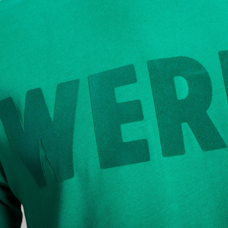 ProduktdetailsStilvoll in Grün. Dieses Werder T-Shirt ist das fehlende Teil, um dein Werder-Outfit zu vervollständigen.Das Shirt kombiniert ein dezentes, vereinsnahes Detail mit unserer Vereinsfarbe. Auf der Vorderseite der grünen Oberbekleidung befindet sich nämlich ein tonaler „Werder“-Schriftzug als Aufdruck in Samt. Schlicht, aber dennoch stilvoll. So kannst du deinen Lieblingsverein einfach in dein Alltagsoutfit integrieren und kannst so deine Liebe zum SVW zeigen.Stilvolles Design und vielseitig mit anderen Kleidungsstücken kombinierbar. Dieses T-Shirt ist ein echter Allrounder und sorgt für einen unauffälligen Look mit einem dezenten vereinsnahen Detail.Dieser Artikel gehört zu der Initiative „Vom Feld in den Shop“, ein Projekt für nachhaltig produzierte Fanbekleidung: Hiermit werden Kleinbauern in Indien bei der Umstellung auf biologischen Baumwollanbau unterstützt und Kinder aus den angrenzenden Gemeinden des Baumwollanbaus durch Sporttraining gefördert. #vomfeldindenfanshopBesonderheitenHinweise zur NachhaltigkeitZiele des Fairtrade Textilstandards sind die Umsetzung von existenzsichernden Löhnen, die Stärkung von Arbeitern und Arbeiterinnen und mehr Sicherheit am Arbeitsplatz. Die Lieferkette von diesem Brands Fashion-Produkt ist nach dem Textilstandard zertifiziert. Es wird kontinuierlich daran gearbeitet, existenzsichernde Löhne in der kompletten Lieferkette umzusetzen, besuche: www.brands-fashion.comDarüber hinaus ist die gesamte Baumwolle in diesem Produkt von Fairtrade-Produzenten angebaut, nach dem Fairtrade-Baumwollstandard zertifiziert und gehandelt.Mehr Infos unter fairtrade-deutschland.de/siegel mit dem Fairtrade-Code 34261005Dieses Produkt trägt den Grünen Knopf. Das heißt: hohe soziale und ökologische Standards. Vom Staat festgelegt und von unabhängigen Prüfern kontrolliert. Brands Fashion GmbH trägt die Produktverantwortung für diesen „Grüner Knopf”-zertifizierten Artikel.Dieser Artikel ist mit dem Global Organic Textile Standard in Conversion (kurz: GOTS IC) ausgezeichnet, welches eine umweltfreundliche und sozialverantwortliche Herstellung der Textilien garantiert. Dabei wird die Umstellung zum kontrollierten biologischen Anbau unterstützt und die mit GOTS IC gekennzeichneten Artikel enthalten einen Mindestanteil von 95% Baumwolle in Umstellung.Mehr Informationen zu diesen Themen findet ihr unter:Fairtrade: https://www.fairtrade-deutschland.de/was-ist-fairtrade/fairtrade-siegelGrüner Knopf: https://www.gruener-knopf.de/GOTS IC: https://global-standard.org/de/neuigkeiten/organic-in-conversion-storyTracycle: https://www.tracycle.com/98651412 tonaler „Werder“-SchriftzugAngaben zum HerstellerWerder Bremen Merchandising GmbH Hoerneckestraße 11/13 DE-28217 Bremenfanshop@werder.de