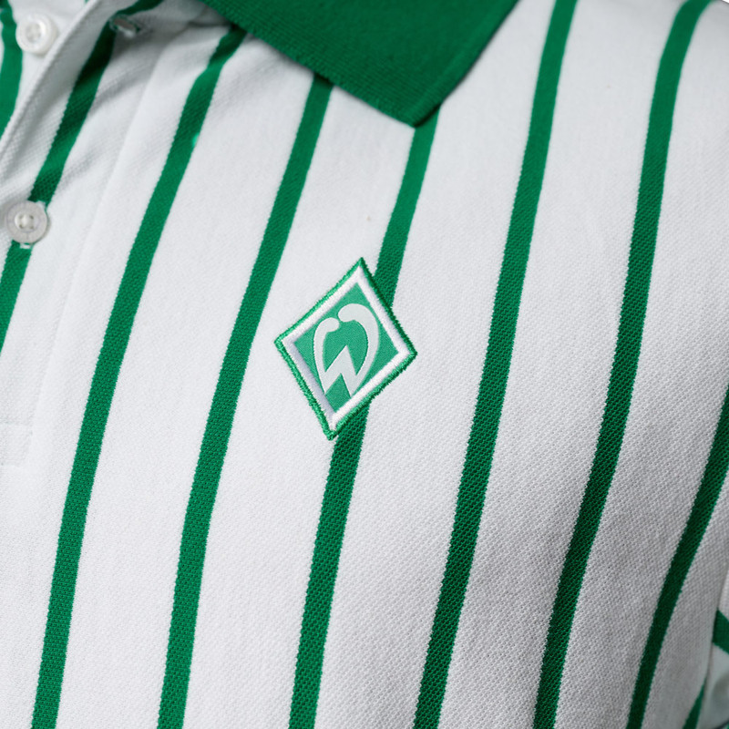 ProduktdetailsDieses Polo-Shirt ist die perfekte grün-weiße Ergänzung für deine Fan-Garderobe!Die feinen grünen Längsstreifen auf weißem Grund, kombiniert mit dem klassischen Polokragen und Ärmelbündchen in Werder-Grün, versprühen echten Retro-Charakter.Der elegante Look wird durch die gestickte Werder-Raute auf der (Herz-)seite perfekt abgerundet. Die Knopfleiste mit zwei Knöpfen sorgt für den typischen Polo-Touch, während das hochwertige Baumwollmaterial angenehm leicht auf der Haut liegt.Ob im Stadion, beim Fanabend oder einfach im Alltag – mit diesem Shirt zeigst du stilvoll Flagge für deinen Verein. #retroBesonderheitenHinweise zur Nachhaltigkeit Dieses Produkt trägt den Grünen Knopf. Das heißt: hohe soziale und ökologische Standards. Vom Staat festgelegt und von unabhängigen Prüfern kontrolliert. CHAPS Merchandising GmbH trägt die Produktverantwortung für diesen „Grüner Knopf”-zertifizierten Artikel.Dieser Artikel ist ebenfalls mit dem GOTS-Label ausgezeichnet, dem Global Organic Textile Standard, welches die Anforderungen an eine ökologisch- und sozialverträgliche Textilproduktion von biologisch erzeugten Rohstoffen unterliegt.Mehr Informationen zu diesen Themen findet ihr unter:Grüner Knopf: https://www.gruener-knopf.de/GOTS: https://global-standard.org/the-standard Retro-Design mit grünen LängsstreifenPolokragen & Ärmelbündchen in Werder-GrünWerder-Raute auf der (Herz-)seiteKnopfleiste mit zwei Knöpfen Angaben zum HerstellerWerder Bremen Merchandising GmbH Hoerneckestraße 11/13 DE-28217 Bremenfanshop@werder.de