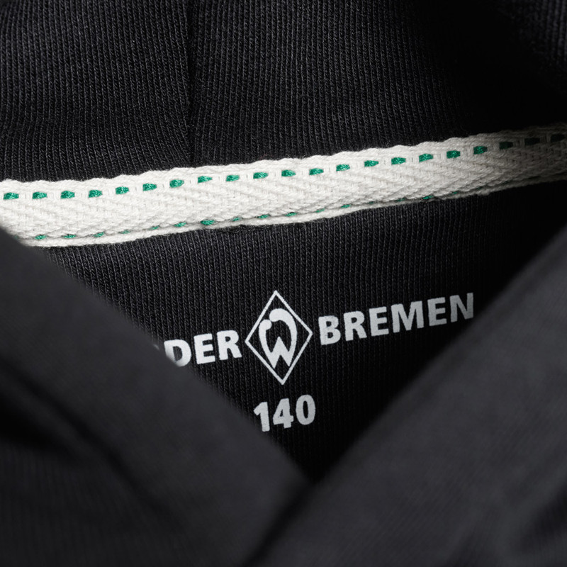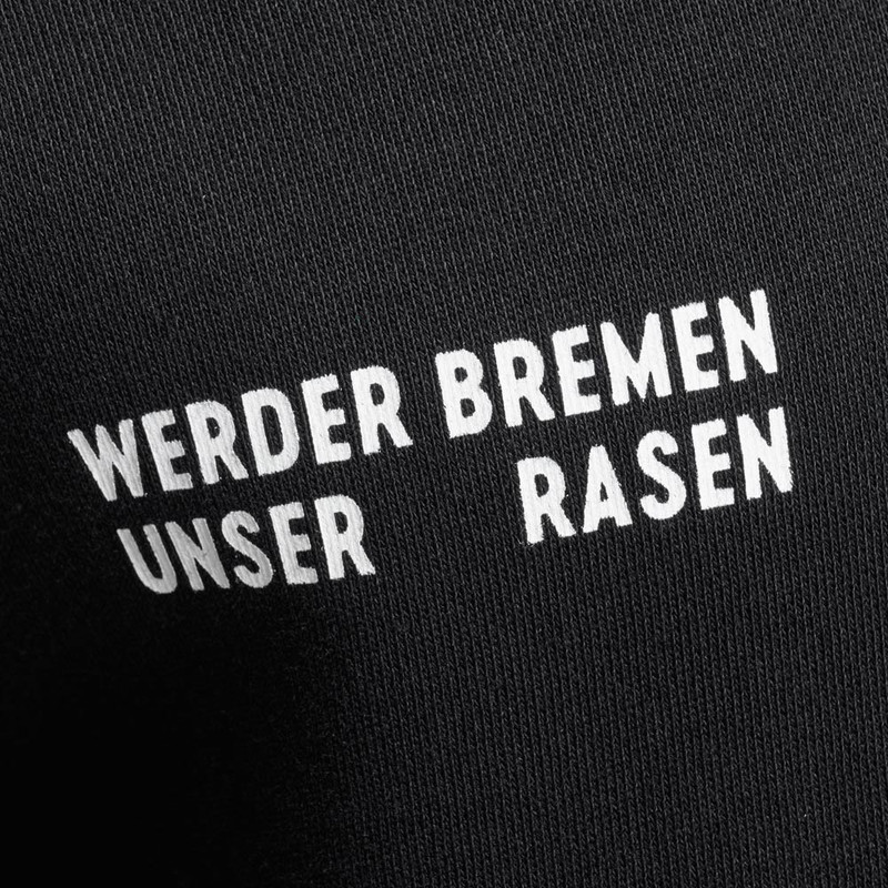 ProduktdetailsDieser schwarze Teens Hoodie ist ein besonderer Hingucker in deiner Werder-Garderobe! Jetzt kannst du ein Stück Stadionrasen immer mit dir tragen!Die Kapuze und die Kängurutasche sorgen für eine ideale Alltagstauglichkeit, die Rippbündchen an Ärmelenden und Saum für einen guten Sitz.Das Highlight des Hoodies ist das kreative Design: eine detaillierte botanische Illustration von einem Stück Rasen und dessen Blüte gerahmt in einer weißen Raute und unserem Schriftzug „Werder Bremen – Unser Rasen“ ist auf der Rückseite abgebildet.Auf der Vorderseite wird die Illustration in kleinerer Darstellung auf der linken (Herz-)Seite aufgegriffen. Auf der rechten Vorderseite findet sich der „Werder Bremen – Unser Rasen“-Schriftzug in Weiß wieder.Unser Rasen kann also auch blühen! Eine Wissenschaft für sich, aber enorm wichtig für das Spiel der Profis: Die Rasenpflege im Weserstadion! Dieser Teens Hoodie ist pures Stadion-Feeling!#frischesBesonderheitenHinweise zur NachhaltigkeitDieses Produkt trägt den Grünen Knopf. Das heißt: hohe soziale und ökologische Standards. Vom Staat festgelegt und von unabhängigen Prüfern kontrolliert. CHAPS Merchandising GmbH trägt die Produktverantwortung für diesen „Grüner Knopf”-zertifizierten Artikel.Dieser Artikel ist ebenfalls mit dem GOTS-Label ausgezeichnet, dem Global Organic Textile Standard, welches die Anforderungen an eine ökologisch- und sozialverträgliche Textilproduktion von biologisch erzeugten Rohstoffen unterliegt.Mehr Informationen zu diesen Themen findet ihr unter:Grüner Knopf: https://www.gruener-knopf.de/GOTS: https://global-standard.org/the-standard UnisexHoodie in SchwarzRückseite: detaillierte botanische Illustration von der Rasenblüte gerahmt in einer weißen Raute und unserem Schriftzug „Werder Bremen – Unser Rasen“links auf der Vorderseite: detaillierte botanische Illustration vom Rasen gerahmt in einer weißen Rauterechts auf der Vorderseite: „Werder Bremen – Unser Rasen“-Schriftzug in WeißKängurutascheRippbündchen an Ärmelenden und SaumKapuzeAngaben zum HerstellerWerder Bremen Merchandising GmbH Hoerneckestraße 11/13 DE-28217 Bremenfanshop@werder.de