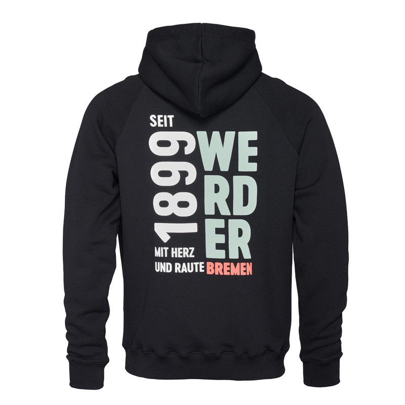 ProduktdetailsMit diesem Hoodie zeigst du deine Verbundenheit zu Werder Bremen auf sportlich stilvolle Weise!Auf der Vorderseite grüßt dich ein dezenter „MOIN“-Schriftzug! Die Rückseite beeindruckt mit einem markanten Schrift-Design: „Seit 1899 – Mit Herz und Raute Bremen“.Gefertigt aus 100% Baumwolle aus biologischem Anbau mit einer flauschigen Innenseite sorgt dieser Hoodie für einen angenehmen Tragekomfort – ob beim Stadionbesuch, in der Freizeit oder an kühleren Tagen.Mach diesen Hoodie zu deinem neuen Lieblingsstück und zeige, dass dein Herz für Werder Bremen schlägt! #zuhauseBesonderheitenHINWEISE ZUR NACHHALTIGKEIT:Dieses Produkt wurde zu 100% aus Baumwolle aus biologischem Anbau produziert. Vorderseite: MOIN“-SchriftzugRückseite mit Schrift-Design: „Seit 1899 – Mit Herz und Raute Bremen“KängurutascheKapuze mit Kordelzug und HalfzipRippbündchen an Ärmelenden und SaumAngaben zum HerstellerWerder Bremen Merchandising GmbH Hoerneckestraße 11/13 DE-28217 Bremenfanshop@werder.de