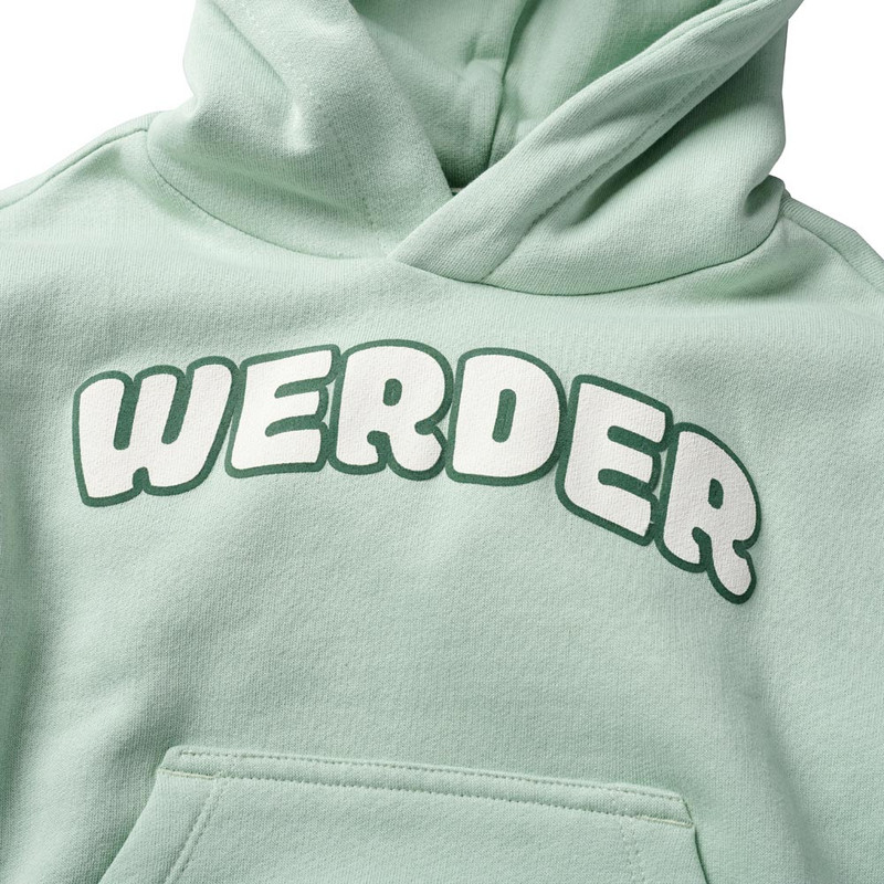ProduktdetailsFür kleine Werder-Fans mit großer Leidenschaft!Dieser hellgrüne Kinder Hoodie kombiniert die berühmten Bremer Stadtmusikanten mit dem klassischen Werder-Style. Auf der Vorderseite findet sich der auffällige „Werder“-Schriftzug, während die Rückseite mit der Silhouette von Esel, Hund, Katze und Hahn begeistert – ein starkes Symbol für Zusammenhalt und Teamgeist!Dank 100 % Baumwolle aus biologischem Anbau ist der Hoodie nicht nur weich und gemütlich, sondern auch nachhaltig produziert. Die Kapuze ohne Kordelzug sorgt für extra Sicherheit, und die praktische Kängurutasche hält kleine Hände warm.Ein Hoodie für kleine Werder-Fans mit großer Begeisterung! #zuhauseBesonderheitenHINWEISE ZUR NACHHALTIGKEIT:Dieses Produkt wurde zu 100% aus Baumwolle aus biologischem Anbau produziert. Front-Print mit den Bremer Stadtmusikanten in HellgrünRückseite mit Werder-Schriftzug in HellgrünKängurutaschenRippbündchen an Ärmelenden und SaumKapuze Angaben zum HerstellerWerder Bremen Merchandising GmbH Hoerneckestraße 11/13 DE-28217 Bremenfanshop@werder.de