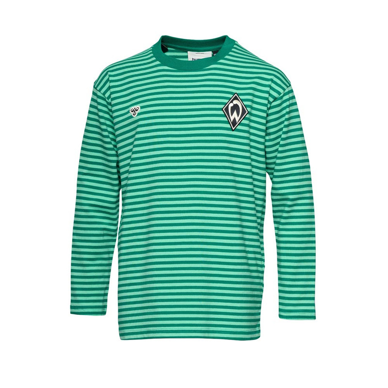 ProduktdetailsStylisch, bequem und 100 % Werder – dieses gestreifte Langarmshirt für Kinder ist der perfekte Alltagsbegleiter für junge Fans.Die frischen Querstreifen in Hell- und Dunkelgrün bringen Farbe in den Alltag und sorgen für einen modernen, kindgerechten Look. Der kontrastfarbene Rundhalsausschnitt in Dunkelgrün rundet das Design perfekt ab.Auf der Brust zeigen sich dezent, aber eindeutig die gestickte Werder-Raute und das hummel-Logo. Der angenehme Schnitt und das weiche Material machen das Shirt ideal für Schule, Spielplatz oder Wochenend-Abenteuer.Dies wird das neue Lieblingsshirt von den kleinen Werderanern! BesonderheitenHINWEISE ZUR NACHHALTIGKEIT:Dieses Produkt wurde zu 95% aus Baumwolle aus biologischem Anbau produziert. Werder-Raute als Web-Patch auf der Herzseitehummel-LogoStreifen-Look in Dunkel- und HellgrünLangarmRundhalsausschnitt Angaben zum Herstellerhummel Sport & Leisure Warenhandelsgesellschaft mbH Leverkusenstrasse 54DE-22761 Hamburg info@hummelsport.de
