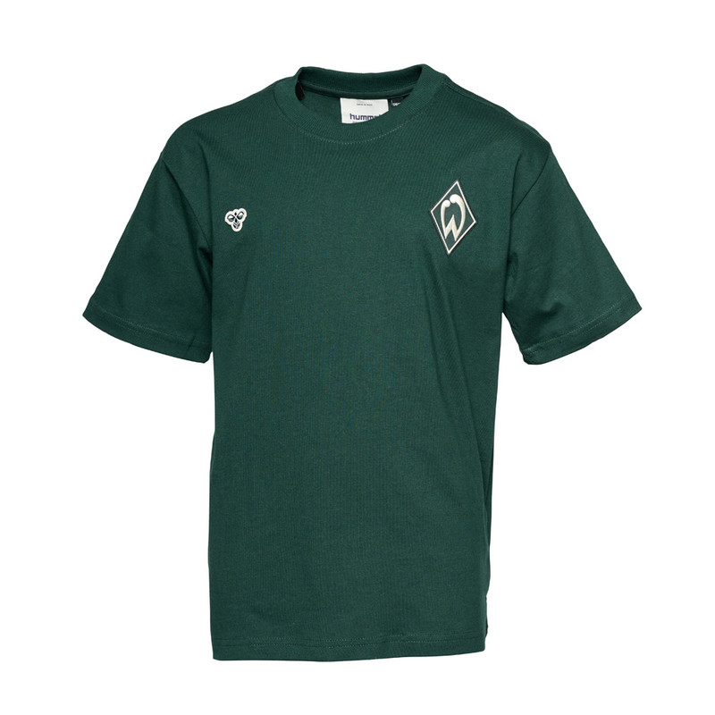 ProduktdetailsEin Klassiker für kleine Werder-Fans!Dieses dunkelgrüne Kinder-T-Shirt ist der perfekte Begleiter für Alltag, Schule, Freizeit oder den nächsten Stadionbesuch. Die Werder-Raute auf der Herzseite und das hummel-Logo runden den sportlichen Look ab.Dank des bequemen Schnitts und der weichen Baumwollqualität trägt sich das Shirt super angenehm.Das perfekte T-Shirt für die Kleinen auf und neben dem Platz! BesonderheitenHINWEISE ZUR NACHHALTIGKEIT:Dieses Produkt wurde zu 100% aus Baumwolle aus biologischem Anbau produziert.  Werder-Raute als Web-Patch auf der Herzseitehummel-LogoKurzarmRundhalsausschnittbequemer, sportlicher Schnitt Angaben zum Herstellerhummel Sport & Leisure Warenhandelsgesellschaft mbH Leverkusenstrasse 54DE-22761 Hamburg info@hummelsport.de