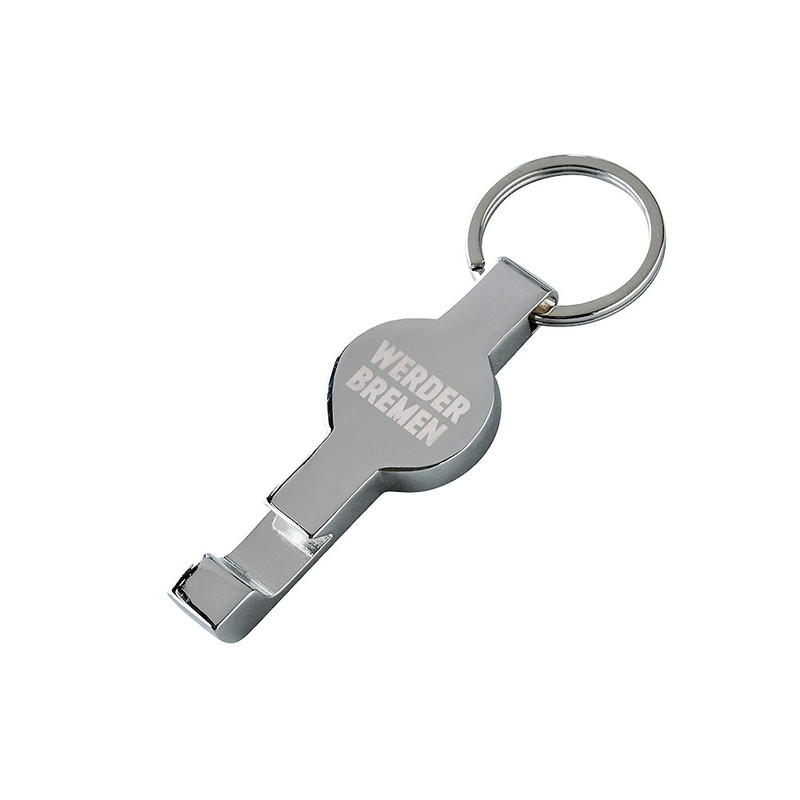 Produktdetails Stilvoll und praktisch zugleich. Dieser SV Werder Bremen Schlüsselanhänger zeichnet sich durch seine Multifunktionalität aus.Immer dabei, immer einsatzbereit. Praktischer Schlüsselanhänger in Form eines Flaschenöffners mit integriertem Einkaufschip. Der Chip sorgt mit der Werder-Raute und den Farben Grün-Weiß für vereinsverbundene Akzente. Auf der Rückseite des Anhängers ist der Werder Bremen-Schriftzug zu finden. So bleibt kein Zweifel mehr, für welchen Verein dein Herz schlägt.Ob zum Einkaufen oder auf ein erfrischendes Getränk mit Freuden dieser Anhänger ist nicht nur ein Werder Accessoire für deinen Schlüsselbund, sondern eignet sich hervorragend zum Öffnen von Flaschen und ist dank des Chips der perfekte Begleiter für deinen nächsten Einkauf. Dieser Anhänger mit Schlüsselring ist der perfekte Partner für alle deine Schlüssel, egal ob Haustür-, Auto-, Keller- oder Büroschlüssel. So fällt es leicht, seine Liebe zum Verein zu zeigen.Besonderheiten Flaschenöffner integrierter Einkaufschip mit Werder-Raute „Werder Bremen“-Schriftzug auf der Rückseite Angaben zum Hersteller Werder Bremen Merchandising GmbH Hoerneckestraße 11/13 DE-28217 Bremenfanshop@werder.de