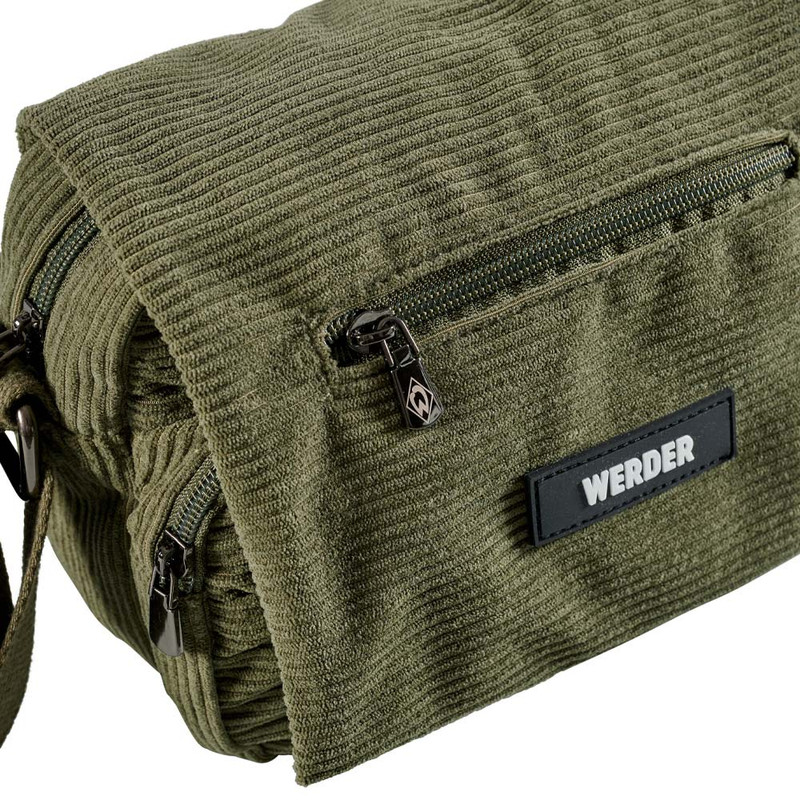 Produktdetails Praktisch und stylisch: Mit der WERDER Umhängetasche aus Cord trägst du deine Fanliebe ganz selbstverständlich in den Alltag.Der robuste Cordstoff in einem dezenten Olivton verleiht der Tasche einen modernen Retro-Look und macht sie zum echten Hingucker – ob in der Stadt, im Stadion oder auf Reisen.Das cleane Frontdesign mit dem auffälligen „WERDER“-Patch in Schwarz-Weiß unterstreicht deine Zugehörigkeit, ohne aufdringlich zu wirken. Ein praktisches Reißverschlussfach außen vorne und hinten bietet schnellen Zugriff auf Schlüssel, Tickets oder Smartphone, während der verstellbare Schultergurt für optimalen Tragekomfort sorgt – ganz egal, wie lang der Tag wird.In der Tasche gibt es ein Hauptfach und vier weitere Fächer mit Reißverschluss.Diese Tasche ist dein täglicher Begleiter – mit Stil, Herz und der Liebe zu Werder!Besonderheiten aus Cord „WERDER“-Patch in Schwarz-Weiß außen: zwei Reißverschlussfächer innen: ein Hauptfach und vier weitere Fächer mit Reißverschluss verstellbarer Schultergurt Angaben zum Hersteller Werder Bremen Merchandising GmbH Hoerneckestraße 11/13 DE-28217 Bremenfanshop@werder.de