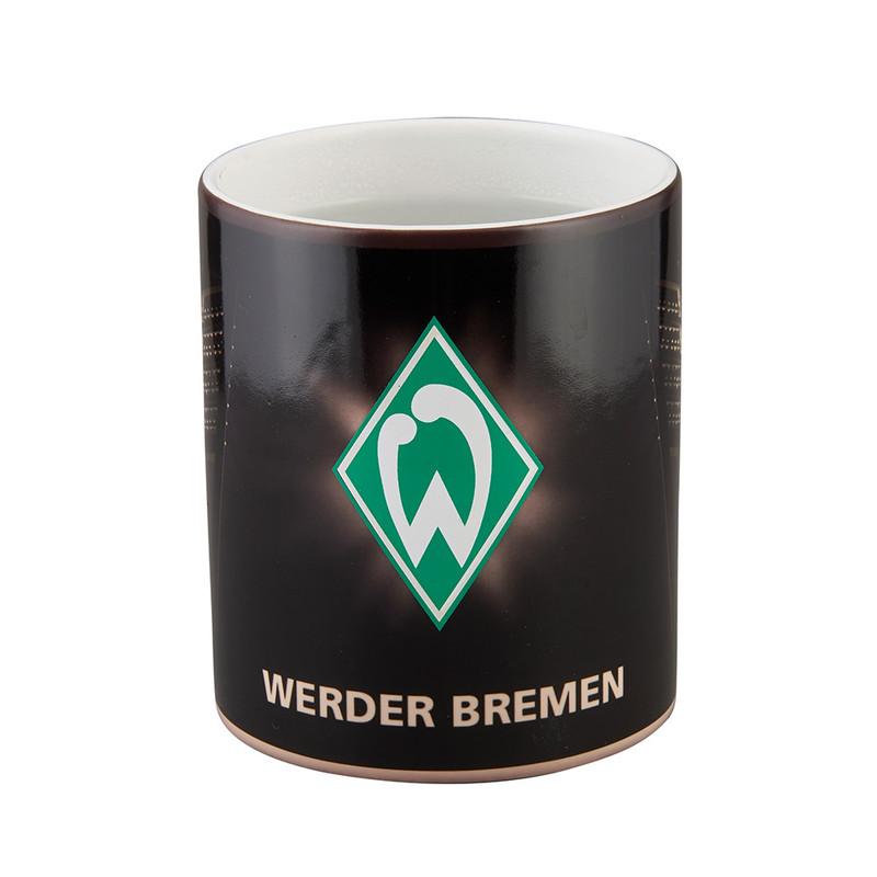 Produktdetails Abrakadabra. Du möchtest deine Faszination für Magie und den SV Werder Bremen kombinieren? Dann ist diese Tasse genau das richtige für deine zauberhafte Werder Fan-Kollektion.Dieser Fan-Artikel hat die magische Fähigkeit sein Aussehen zu verändern, denn es handelt sich hierbei um eine sogenannte Zaubertasse. Ist diese leer bzw. enthält eine kalte Flüssigkeit, bleibt der Becher wie er ist: Schwarz, mit einer gedruckten Werder-Raute. Auch so ist die Tasse schon ein Must-have, die jeder Fan haben muss.Füllt man jedoch ein heißes Getränk in das Gefäß, passiert der Zauber. Plötzlich erscheint unterhalb der Werder-Raute der „Werder Bremen“-Schriftzug und helle Spezialeffekte heben das Logo des SV Werder Bremen nochmal hervor. Zusätzlich erscheint ein farblich abgesetzter Rand oben und unten. Das Highlight, das zu diesem Zeitpunkt auch in Erscheinung tritt, sind die zwei Flutlichtmasten rechts und links vom Logo: Das Wahrzeichen unseres schönen WESERSTADIONs. Diese Tasse besticht einfach mit ihrer hochwertigen Optik. Allerdings ist sie nicht spülmaschinen- oder mikrowellengeeignet.Egal, ob bei einem Kaffee bei der Arbeit, mit einem heißen Tee zuhause auf der Couch oder doch mit einem Glühwein in der Wohnküche bei Freunden. Diese Tasse macht den Genuss heißer Getränke zu etwas Besonderem. So fällt es leicht seine Liebe zum Verein zu zeigen.Besonderheiten Zaubertasse: ändert ihre Farbe beim Einfüllen heißer Getränke Normalzustand: schwarz mit Werder-Raute als Druck beim Einfüllen heißer Getränke: „Werder Bremen“-Schriftzug unterhalb der Werder-Raute helle Spezialeffekte hinter der Werder-Raute Flutlichtmasten beidseitig von der Werder-Raute farblich hell abgesetzter Rand oben und unten nicht spülmaschinen- oder mikrowellengeeignet Angaben zum Hersteller Werder Bremen Merchandising GmbH Hoerneckestraße 11/13 DE-28217 Bremenfanshop@werder.de