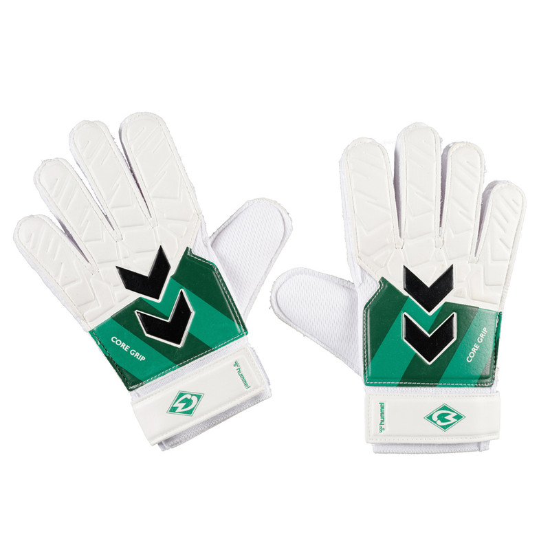 Produktdetails Für dein Spiel!Die grün-weißen Torwarthandschuhe von hummel verfügen über einen widerstandsfähigen Handrücken, der sich perfekt zum Abwehren von Flanken mit der Faust eignet. Darüber hinaus sind sie mit einer abriebfesten Handfläche versehen, die ein hohes Maß an Griffigkeit bietet und die Hand vor hohen Aufprallkräften schützt. Eine Vollbandage mit durchgehendem Riemen sorgt für einen guten Sitz und viel Flexibilität im Bereich der Handgelenke.Die gedruckten Kontrastwinkel an der Seite und unsere Werder-Raute runden den Look ab!Besonderheiten Widerstandsfähiger Handrücken Abriebfeste Handfläche Vollbandage mit durchgehendem Riemen Gedruckte Kontrastwinkel Werder-Raute Angaben zum Hersteller hummel Sport & Leisure Warenhandelsgesellschaft mbH Leverkusenstrasse 54 DE-22761 Hamburg info@hummelsport.de