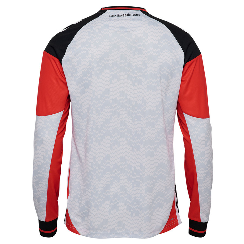 Produktdetails Grau für unseren Torhüter. Das offizielle SV Werder Bremen Torwart-Trikot 2025/26 überzeugt in den Farben Grau, Schwarz und Rot.Highlight des Torwart-Trikots ist das tonale Hummel-Winkel-Muster auf der Vorder- und Rückseite. Abgerundet wird das Design durch die klassischen hummel-Winkel auf den Schultern.Auf der Vorderseite des langarm-Trikots veredeln das hummel-Logo und die Werder-Raute als Web-Patch samt gesticktem Meisterstern den sportlichen Look. Ein weiterer Hingucker sind die rot abgesetzten Ärmel und die roten Details an den Seiten. Die Brust ist in Schwarz abgesetzt. Die Farbe Schwarz findet sich als Streifen an den Seiten wieder und sorgt zusätzlich für sportliche Details.Das Oberteil punktet dank komfortablem Rundhalsausschnitt. Die hochwertige Optik macht dieses Werder Torwart-Trikot zu einer runden Sache.#Torwarttrikot Besonderheiten das offizielle SV Werder Bremen Torwarttrikot 2025/26 in Grau langarm-Trikot Werder-Raute als Web-Patch gestickter Meisterstern in Gold gummiertes Hummel Logo in Weiß auf der Brust Matthäi-Logo auf der Trikot-Vorderseite tonales Muster auf der Vorder- und Rückseite klassische hummel-Winkel in Weiß auf den Schultern rot abgesetzte Ärmel schwarz abgesetzte Brust schwarze und rote Details an den Seiten komfortabler Rundhalsausschnitt Schriftzug „Lebenslang grün-weiß“ in Schwarz auf der Rückseite unterhalb des Kragens hummel-Logo als Patch am Bund Dieser Artikel ist mit individueller Beflockung von der Zahlung per Nachnahme ausgeschlossen enthält recyceltes Polyester Pflegehinweis: Bitte seitenverkehrt bei 30 Grad waschen und keinen Weichspüler verwenden! Ebenfalls keine Bleichmittel und nicht im Trockner trocknen, nicht bügeln, nicht trockenreinigen! Welche Größe brauche ich? Größentabelle   Größe Länge (in CM) Brustumfang (in CM) Taillenumfang (in CM) 116 48,5 71,4 70,6 128 53,2 76 74,4 140 57,2 82,6 80,8 152 61,7 88,2 86,8 164 64,6 95,2 93 S 74,1 97,4 89 M 74,6 104 94 L 76,3 109,2 100,4 XL 77,9 114,4 106,4 2XL 79,2 121,6 112,8 3XL  81,5 136,8 135,4 4XL 82 139,2 134,6 HINWEISE ZUM UMTAUSCH: Trikots mit “Wir“- oder individueller Beflockung sind vom Umtausch ausgeschlossen. Da es sich beim Aufbringen der Beflockung und Logos um kein maschinelles Verfahren, sondern um Handarbeit handelt, kann es zu Abweichungen zur Abbildung, Positionierung und Schriftgröße kommen. Trikots mit Ziehfäden sind kein Reklamationsgrund. Angaben zum Hersteller hummel Sport & Leisure Warenhandelsgesellschaft mbH Leverkusenstrasse 54 DE-22761 Hamburg info@hummelsport.de