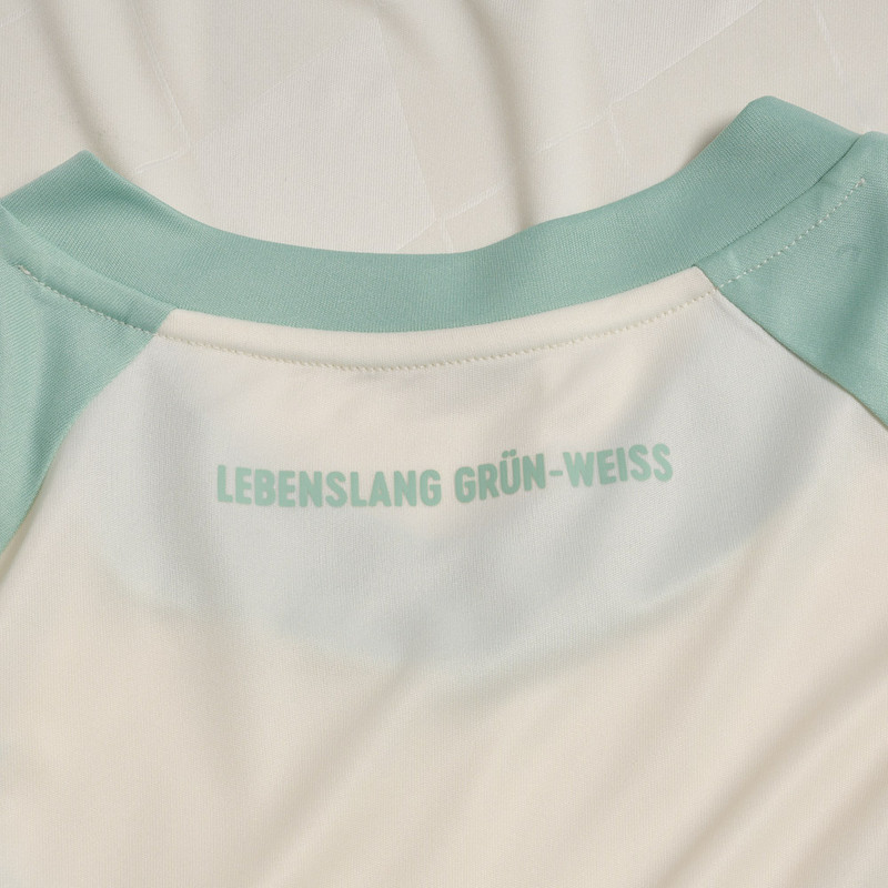Produktdetails FÜR UMZU.Das offizielle Trikot Away 2024/25 ist da und besticht im schlichten Design in Offwhite mit schilfgrünen Farbakzenten.Mit dem Away-Jersey als finales Highlight ist das fehlende Puzzleteil in der Trikotreihe nun gefunden und macht deine Vorfreude auf die neue Saison komplett.Cleaner Look und trotzdem ein absoluter Hingucker des Trikots Away sind die eingeprägten Rauten auf der Vorderseite. Das schilfgrüne hummel-Logo und die Werder-Raute als Web-Patch samt gesticktem Meisterstern veredeln das Kurzarm-Shirt. Auf der Rückseite ist wie gewohnt der Vereinsclaim „Lebenslang grün-weiß“ unterhalb des Kragens zu finden. Abgerundet wird das Jersey durch die Raglanärmel in Schilfgrün und die klassischen hummel-Winkel in Offwhite auf den Schultern.Jederzeit dein perfekter Begleiter – nicht nur für das nächste Auswärtsspiel, sondern auch in der Freizeit jederzeit tragbar! Deine Mannschaft immer dabeihaben, egal wo sie auch spielt! #umzuBesonderheiten das offizielle SV Werder Bremen Auswärtstrikot 2024/25 Kurzarm-Trikot in Offwhite und Schilfgrün Werder-Raute als Web-Patch mit gesticktem Meisterstern gummiertes Hummel Logo auf der Brust Matthäi-Logo auf der Trikot-Vorderseite In den Stoff eingeprägte Rauten auf der Vorderseite Raglanärmel in Schilfgrün mit den klassischen hummel-Winkeln in Offwhite auf den Schultern schilfgrüner Kragen schilfgrüne Highlights an den Seiten Schriftzug „Lebenslang grün-weiß“ auf der Rückseite unterhalb des Kragens schwarzes hummel-Logo als Patch am Bund Dieser Artikel ist mit Spieler- ODER individueller Beflockung von der Zahlung per Nachnahme ausgeschlossen enthält recyceltes Polyester Pflegehinweis: Bitte seitenverkehrt bei 30 Grad waschen und keinen Weichspüler verwenden! Ebenfalls keine Bleichmittel und nicht im Trockner trocknen, nicht bügeln, nicht trockenreinigen. Welche Größe brauche ich? Größentabelle Größe Länge (in CM) Brustumfang (in CM) Taillenumfang (in CM) 116 49,2 70 70,2 128 53,4 80,6 77,8 140 58,6 83,4 83,8 152 61,6 90,8 90,2 164 66,7 96,4 95,6 S 72,2 98,8 96,4 M 75,2 104,2 96 L 75,2 108,4 106,8 XL 78,2 117,4 111,6 2XL 80 124,2 120 3XL 81,5 131,4 128,4 4XL 81,2 139 134,2 5XL 82,5 143,8 140 HINWEISE ZUM UMTAUSCH: Trikots mit Spieler- ODER individueller Beflockung sind vom Umtausch ausgeschlossen. Dies gilt auch, wenn ein Spieler den Verein verlässt oder seine Rückennummer während seiner Spielzeit im Verein wechselt. Da es sich beim Aufbringen der Beflockung und Logos um kein maschinelles Verfahren, sondern um Handarbeit handelt, kann es zu Abweichungen zur Abbildung, Positionierung und Schriftgröße kommen. Trikots mit Ziehfäden sind kein Reklamationsgrund. Angaben zum Hersteller hummel Sport & Leisure Warenhandelsgesellschaft mbH Leverkusenstrasse 54 DE-22761 Hamburg info@hummelsport.de
