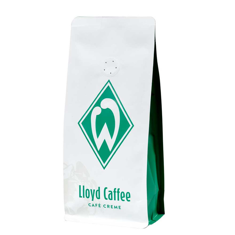 Produktdetails Anpfiff für Genuss! Mit dieser exklusiven Kaffeespezialität von Werder Bremen und Lloyd Caffee spielen ab sofort zwei große Leidenschaften zusammen: Fußball und Kaffee.Der speziell für Kaffeevollautomaten kreierte Werder Café Creme kombiniert intensive Noten von Mandeln mit dunkler Schokolade. Der cremige, mittelkräftige Körper verwöhnt deinen Gaumen, während seine satte Crema eine perfekte Krönung bildet.Du willst schon zuhause vom ersten Moment an wach sein und dir den einen oder anderen Genuss-Kick gönnen? Dann hol dir die schönste Packung deines Lebens!Mit dieser Werder Café Creme holst du dir eine echte Kaffeespezialität nach Hause. Ob für einen grün-weißen Start in den Tag oder nachmittags zum Spiel, er ist ein absolutes Must-Taste für alle Kaffeeliebhaber und Werder-Fans.Besonderheiten Café Creme ganze Bohnen geeignet für Kaffeevollautomaten Noten von Mandeln und dunkler Schokolade Angaben zum Hersteller Lloyd Caffee GmbH Fabrikenufer 115 DE-28217 Bremen Kontakt@lloyd-caffee.de
